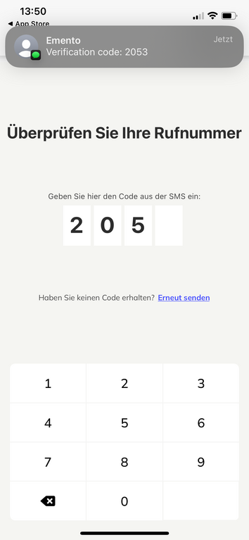Sie erhalten eine 4-stellige Ziffernfolge als SMS. Geben Sie diese über die Tastatur Ihres Handys ein.