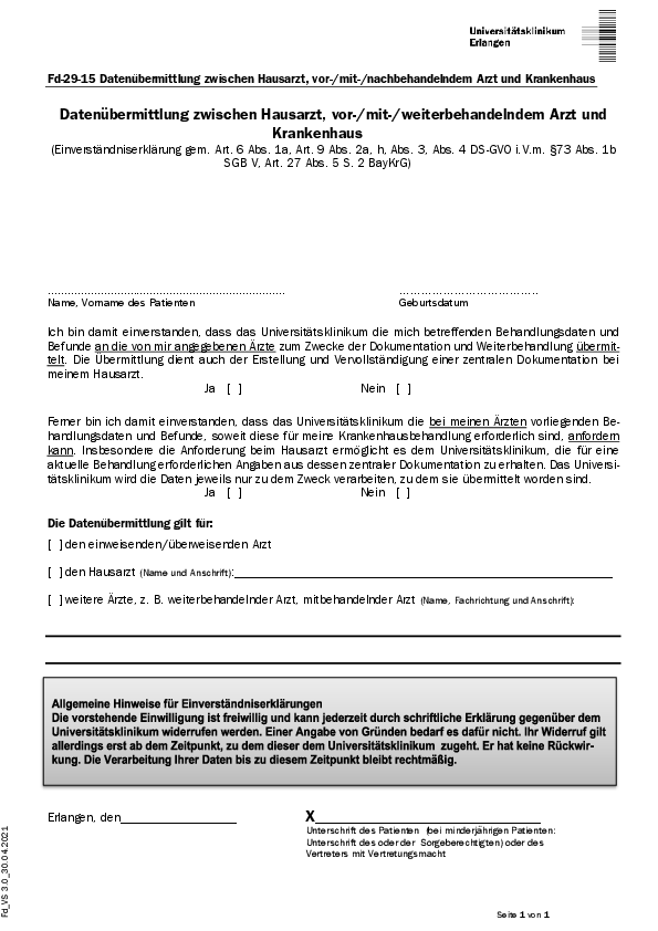 Fd_VS 3.0_30.04.2021 Fd-29-15 Datenübermittlung zwischen Hausarzt, vor-/mit-/nachbehandelndem Arzt und Krankenhaus Datenübermittlung zwischen Hausarzt, vor-/mit-/weiterbehandelndem Arzt und…